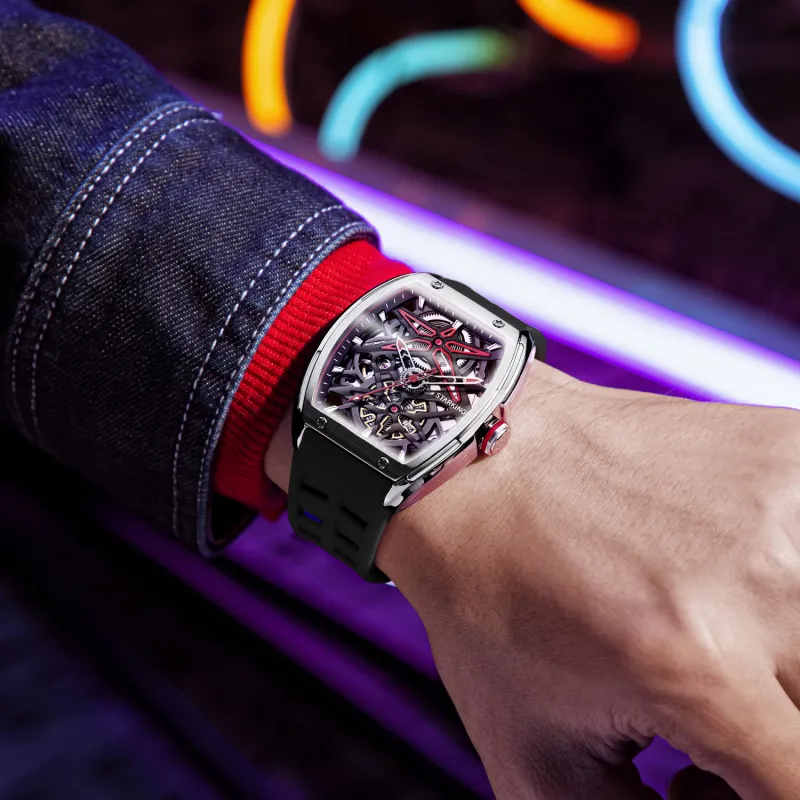 스타킹 Opener 컬렉션 오토매틱 메커니컬 무브먼트 고무 스트랩 중국 시계 남성용 시계 블랙 다이얼