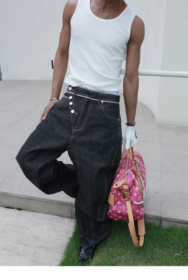 STEEPC 블랙 남녀공용 청바지 - POIZON