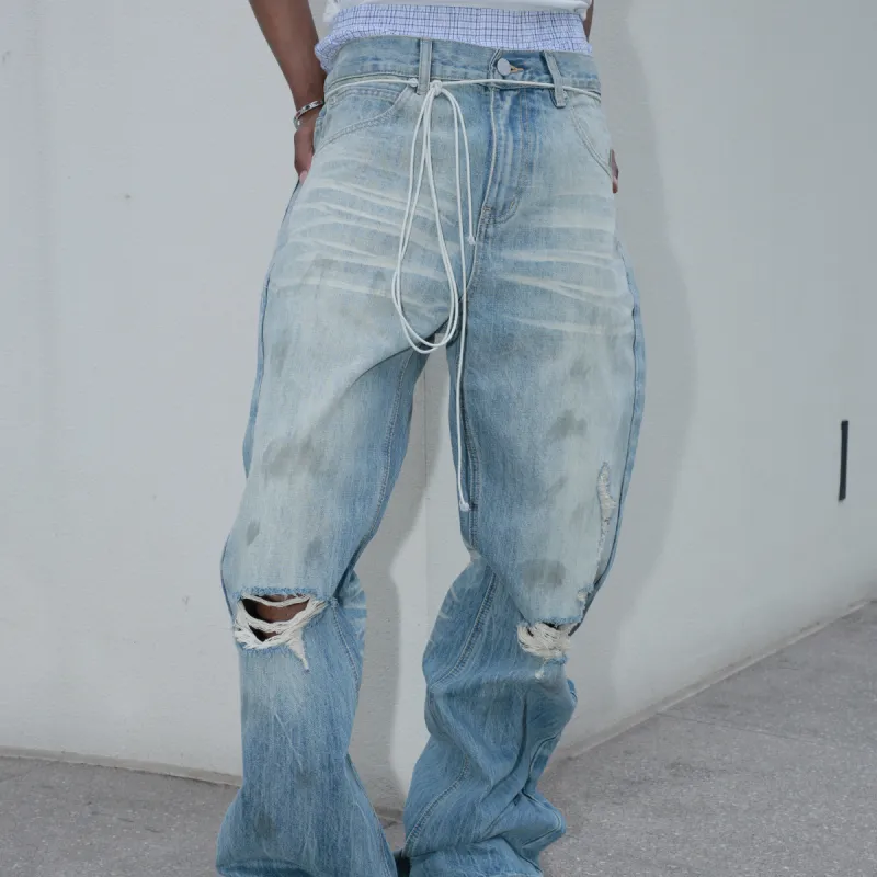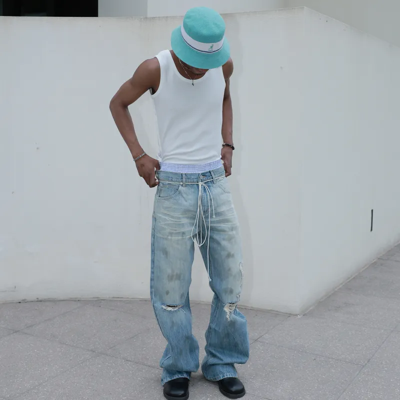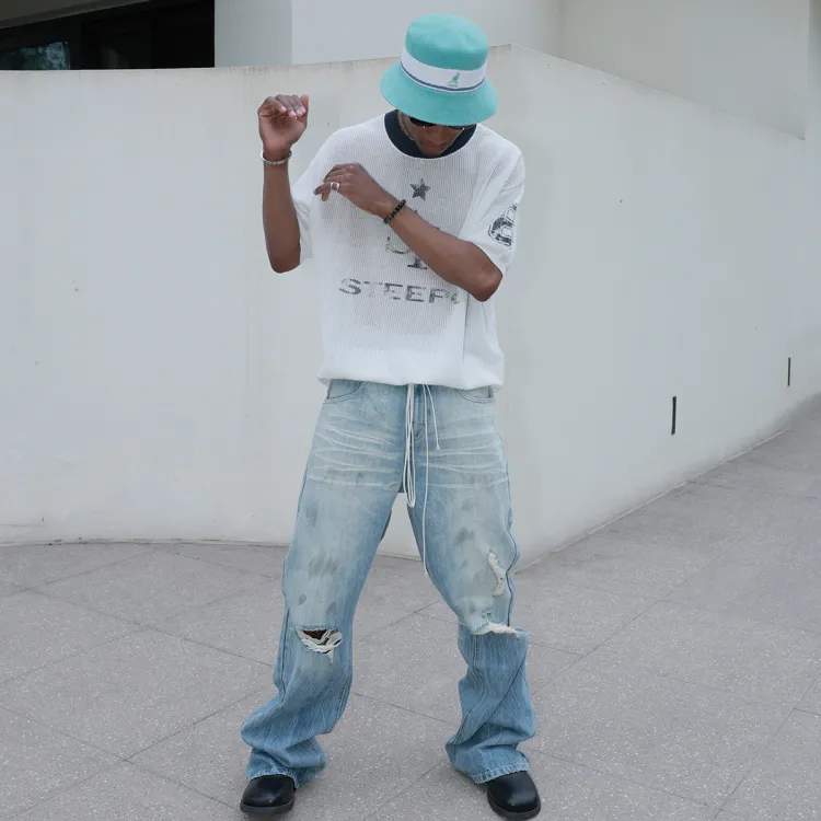 STEEPC 라이트 블루 남녀공용 청바지 - POIZON