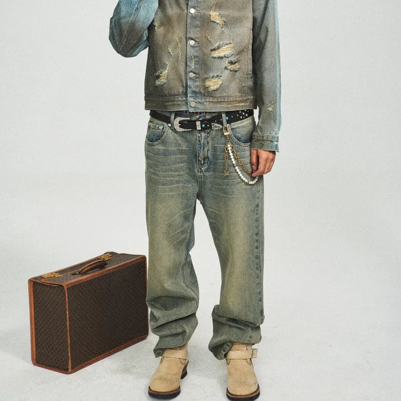 STEEPC 워시드 블루 남녀공용 청바지 - POIZON