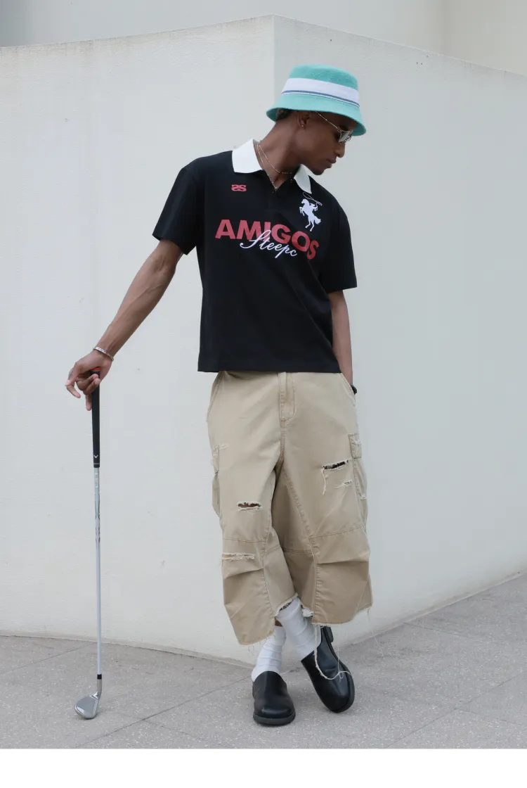 STEEPC 블랙 남녀공용 폴로 셔츠 - POIZON