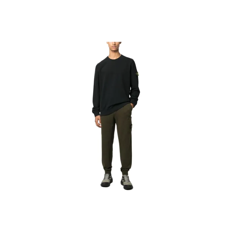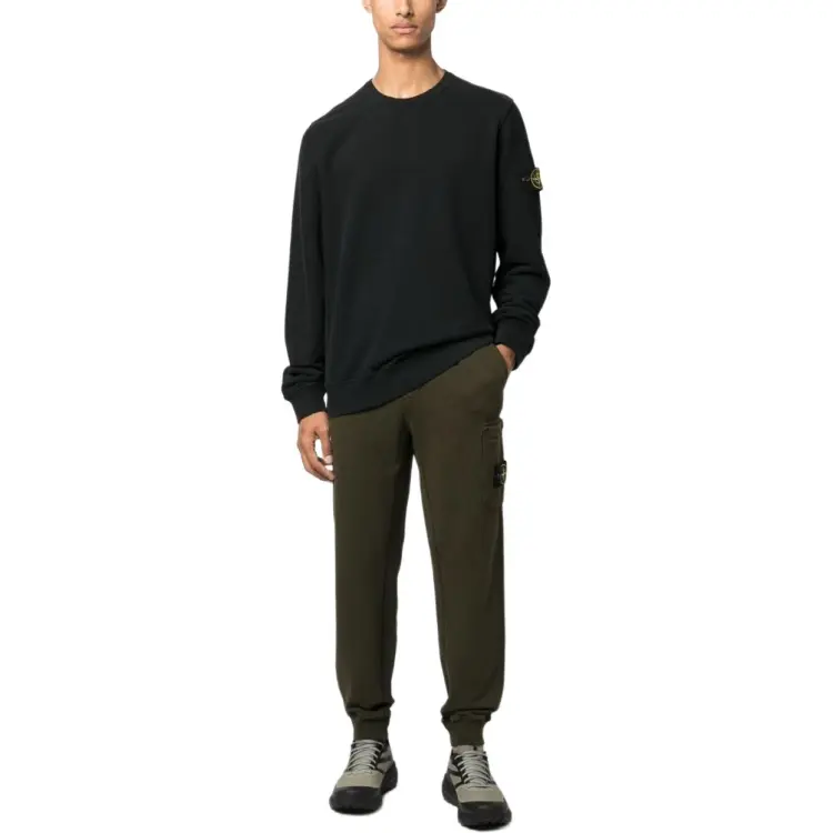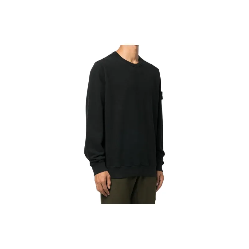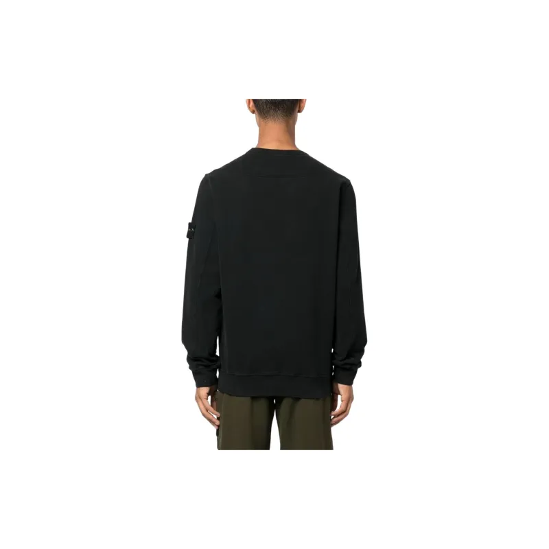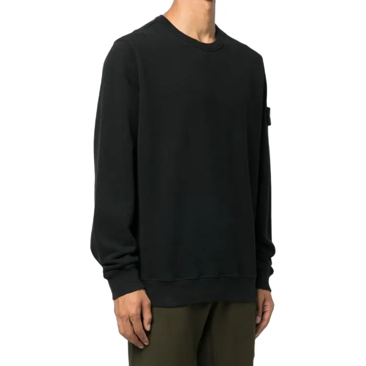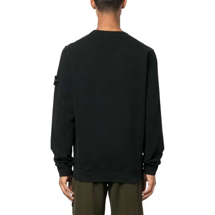 스톤 아일랜드 62420 브러쉬드 코튼 플리스 가먼트 다이드 크루넥 스웨트셔츠 블랙 - 23FW - POIZON