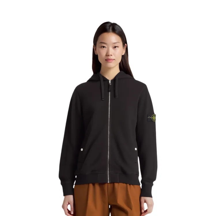 스톤 아일랜드 63160 올드 트리트먼트 후드 풀 지퍼 스웨트셔츠 블랙 - 24SS
