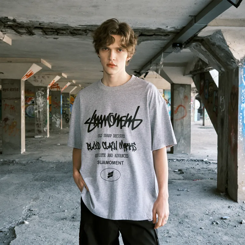 Suamoment 스포츠 캐주얼 스타일 두께감 있는 반팔 티셔츠 남녀공용