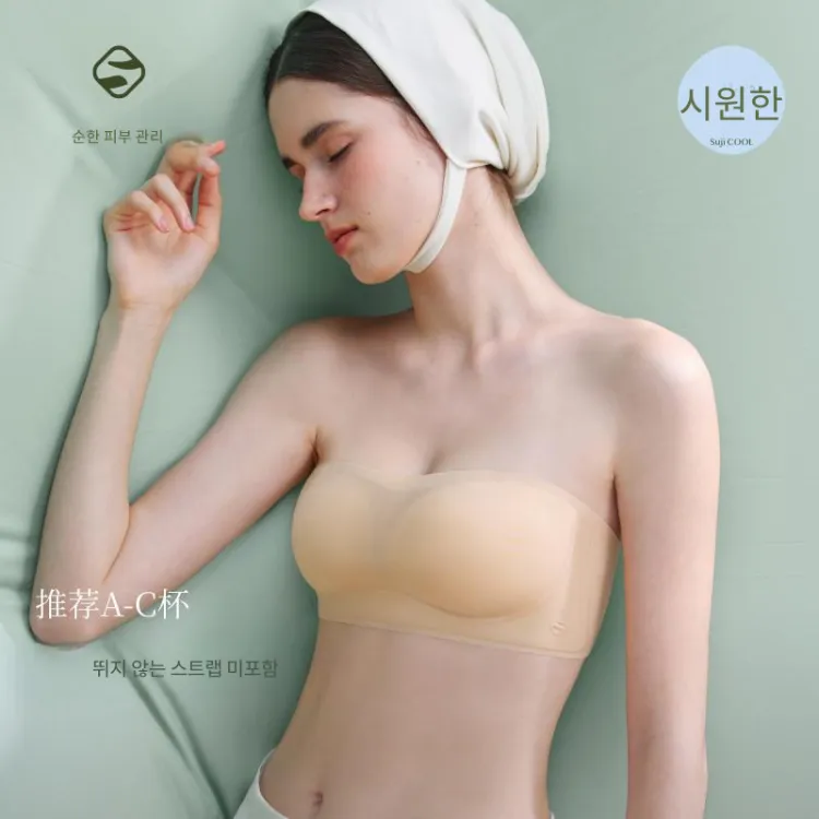 SUJIIN 브라 노와이어 심리스 등 라인 연출 오프숄더 상의 여성