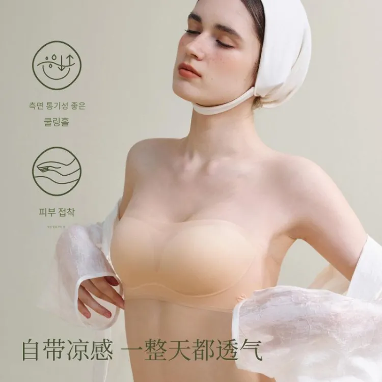 SUJIIN 브라 노와이어 심리스 등 라인 연출 오프숄더 상의 여성 - POIZON