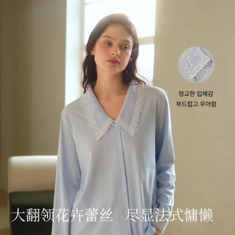 SUJIIN 나르시서스 블루 여성 파자마 세트 - POIZON