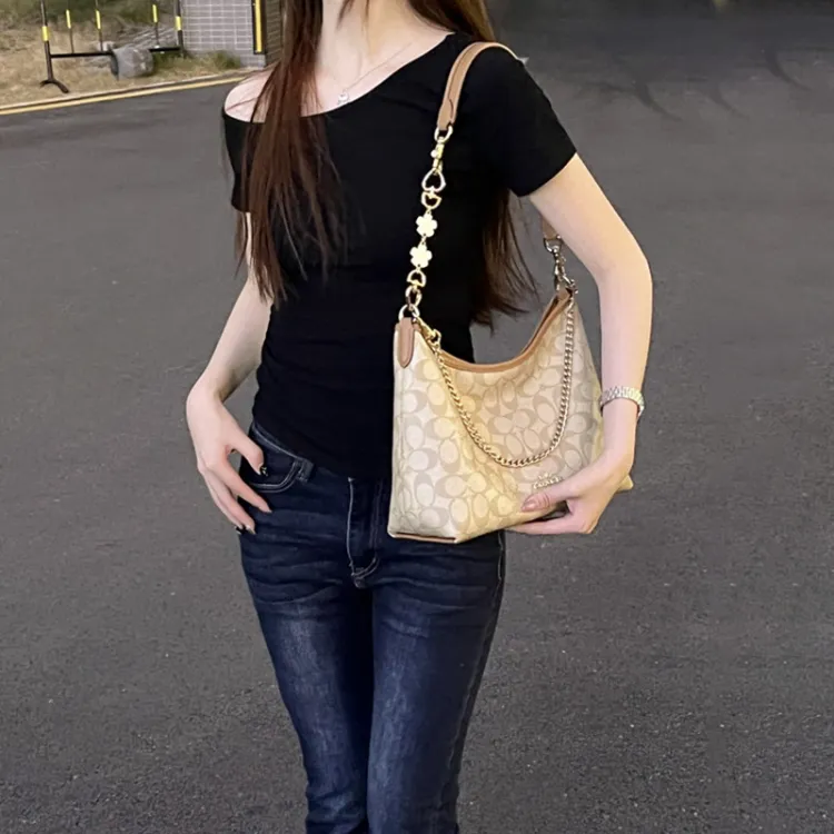 초경량 방수, 듀폰 종이 미디엄 백 숄더 스트랩 금속 연장 체인 액세서리 가방 스트랩 여성 화이트 - POIZON