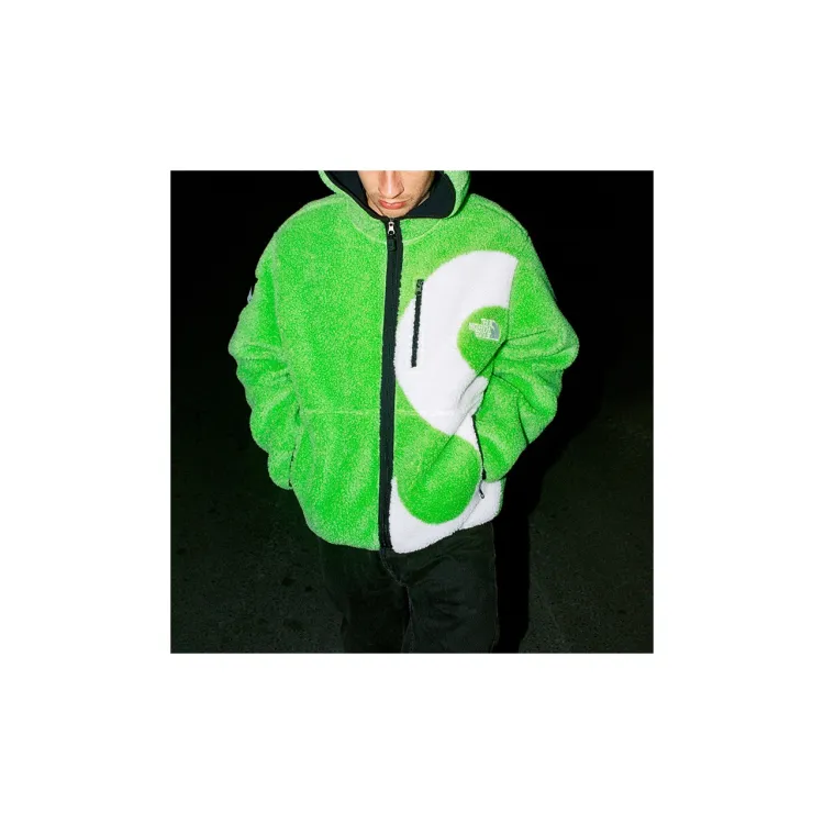 슈프림 x 노스페이스 S 로고 후드 플리스 자켓 라임 - 20FW