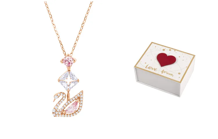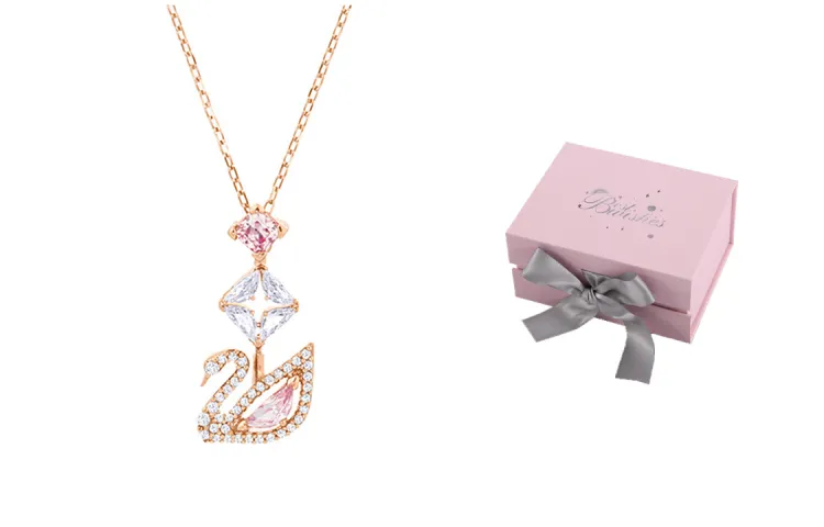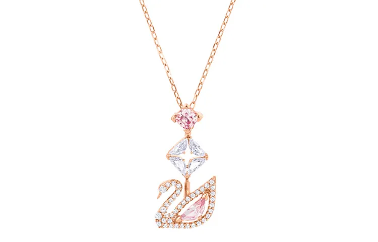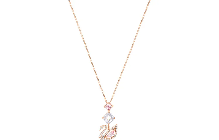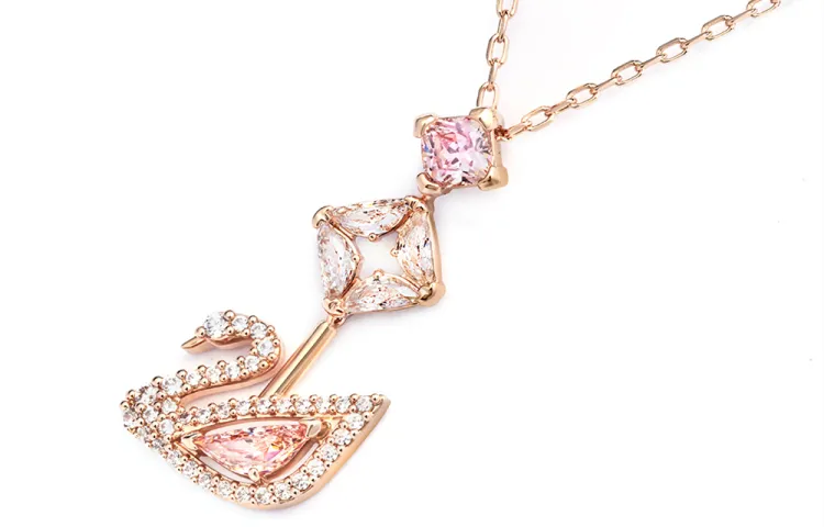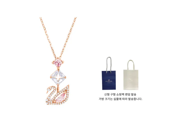 (W) 스와로브스키 다즐링 스완 Y 네클리스 핑크 로즈 골드 플래팅 - POIZON