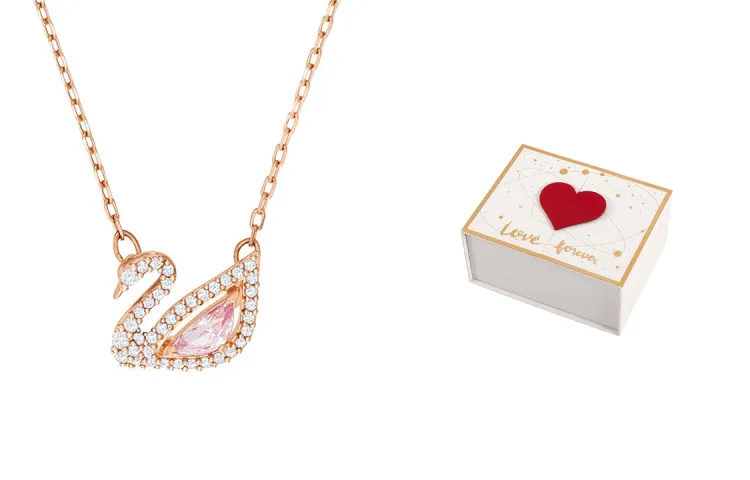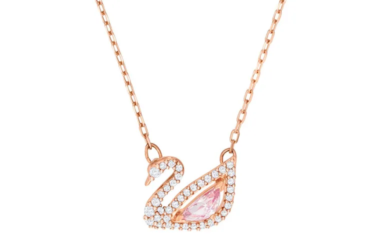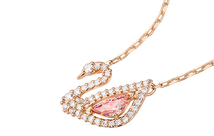 (W) 스와로브스키 다즐링 스완 네클리스 핑크 로즈 골드 플래팅 - POIZON