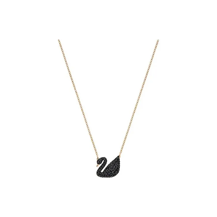 (W) 스와로브스키 아이코닉 스완 펜던트 미디움 블랙 로즈 골드 플래팅 - POIZON