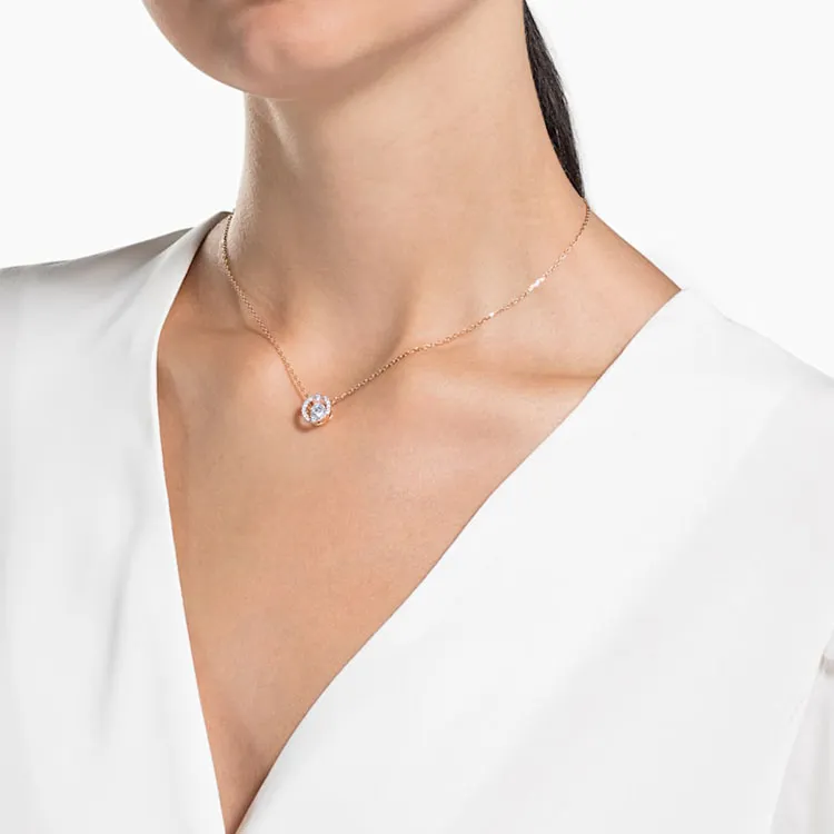 (W) 스와로브스키 스파클링 댄스 네클릭스 화이트 로즈 골드 플래팅 - POIZON