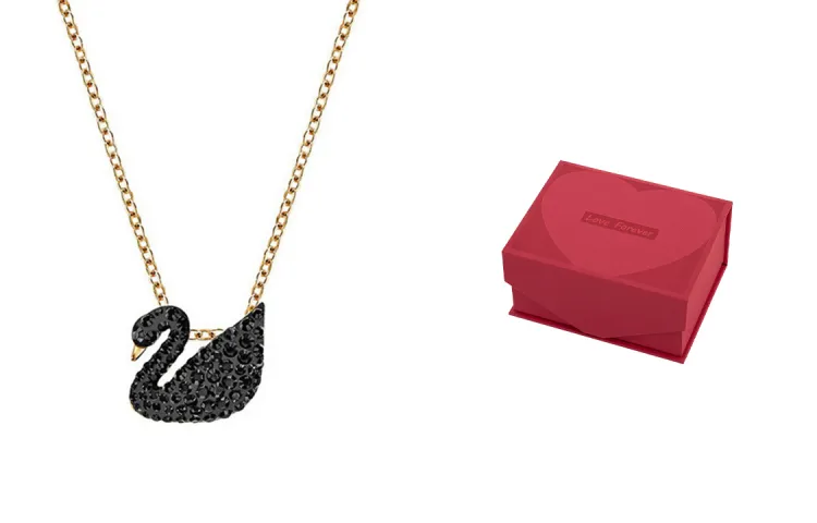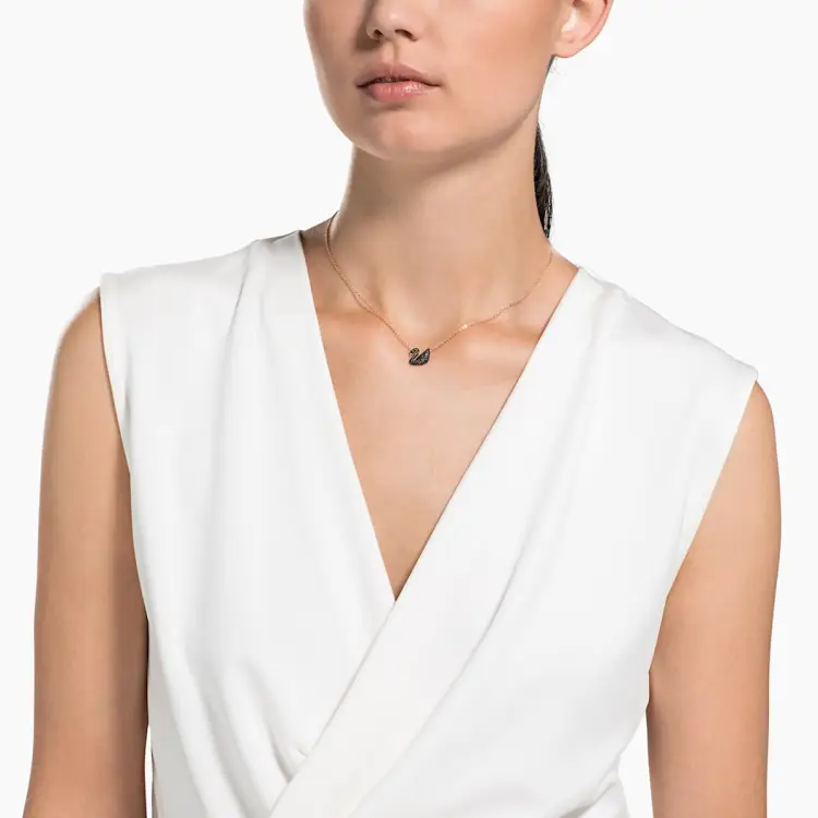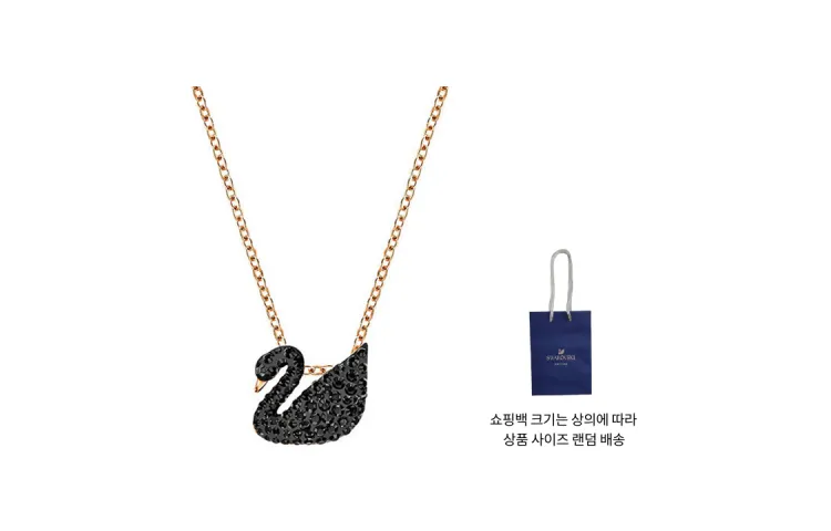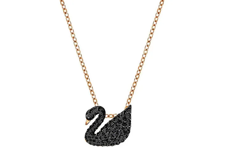 (W) 스와로브스키 아이코닉 스완 펜던트 스몰 블랙 로즈 골드 플래팅 - POIZON