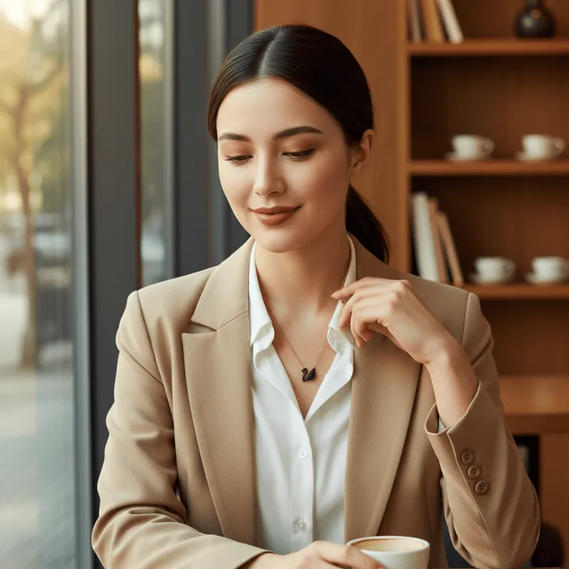 (W) 스와로브스키 아이코닉 스완 펜던트 스몰 블랙 로즈 골드 플래팅