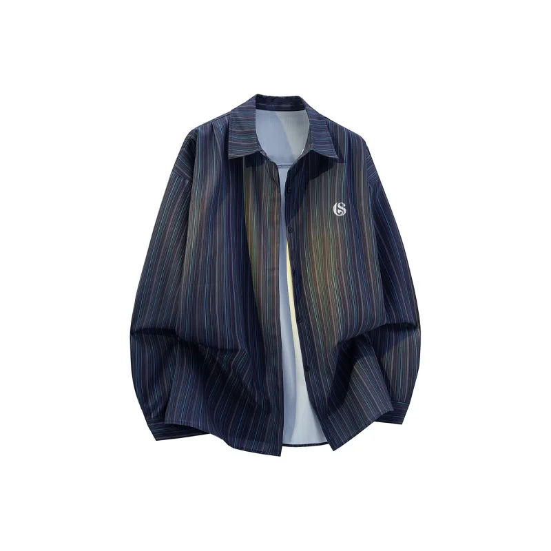 SylphlikeLoli 블루 블랙 스트라이프 패턴 남녀공용 셔츠 - POIZON