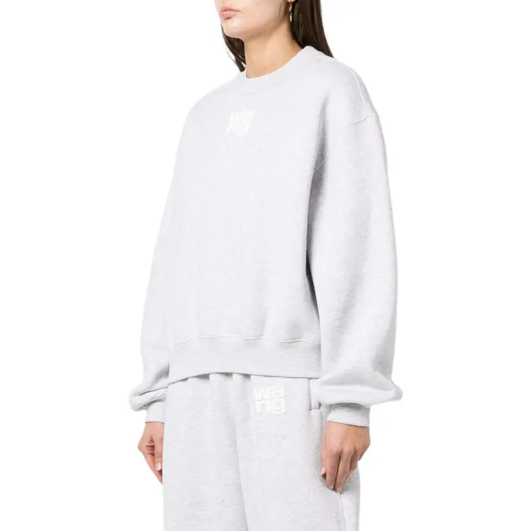 (W) 알렉산더 왕 스트럭처드 테리 퍼프 로고 스웨트셔츠 라이트 헤더 그레이 - POIZON