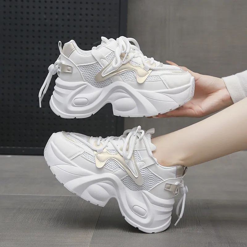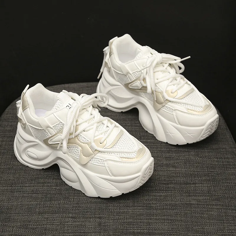 TAFN 내마모성, 키높이, 통기성 좋은 로우탑 청키 스니커즈 여성 아이보리