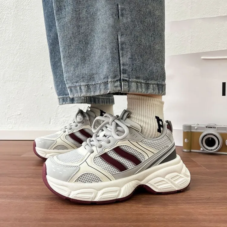 TAFN 청키 스니커즈 로우탑 그레이 레드 여성 - POIZON