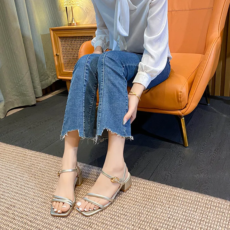 TAFN 일자 스트랩 샌들 골든 여성 - POIZON