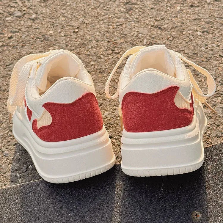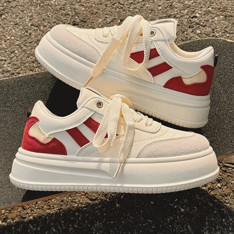 TAFN 스케이트보드화 로우탑 버건디 여성 - POIZON