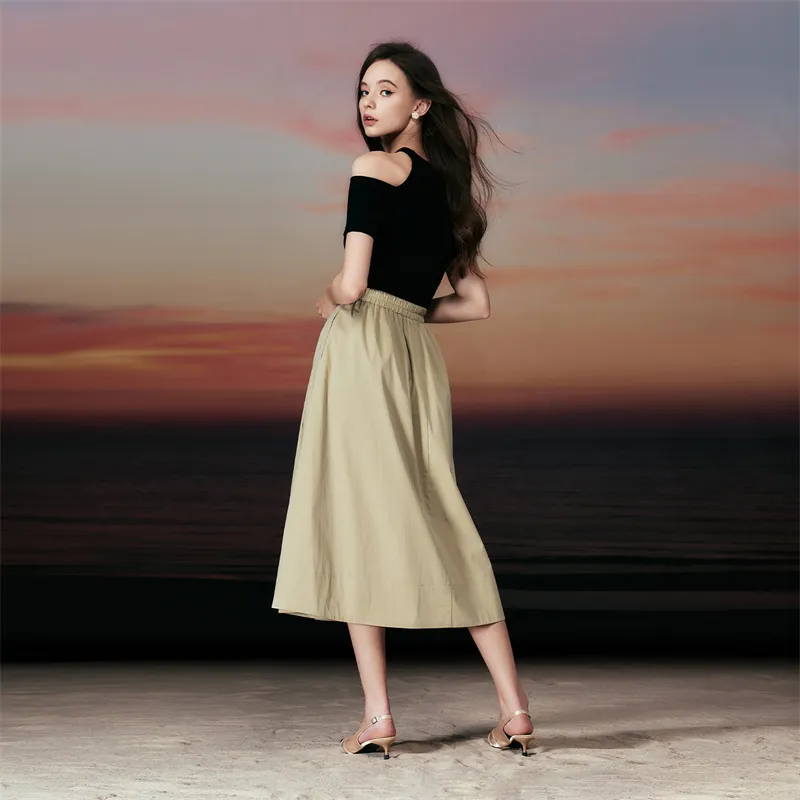 TAMMY TANGS 카키 여성 캐주얼 롱 스커트 - POIZON