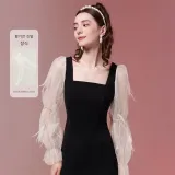 TAMMY TANGS 긴팔 원피스 여성 애프리콧 블랙 색상 블로킹