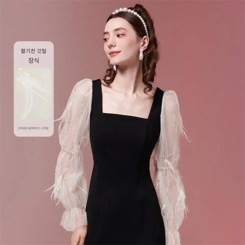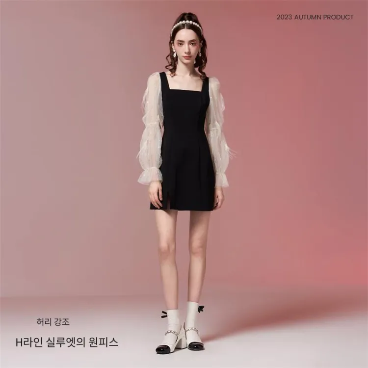 TAMMY TANGS 긴팔 원피스 여성 애프리콧 블랙 색상 블로킹 - POIZON