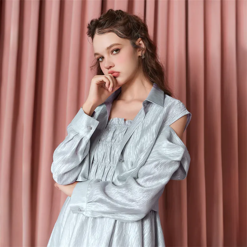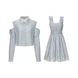 TAMMY TANGS 투피스 스커트 세트 여성 그레이 블루 - POIZON