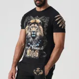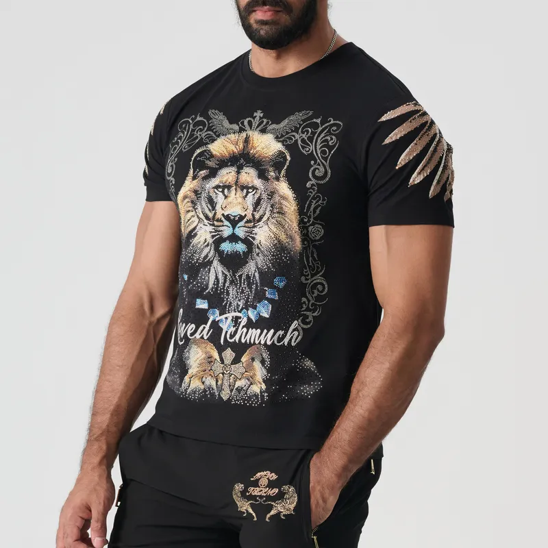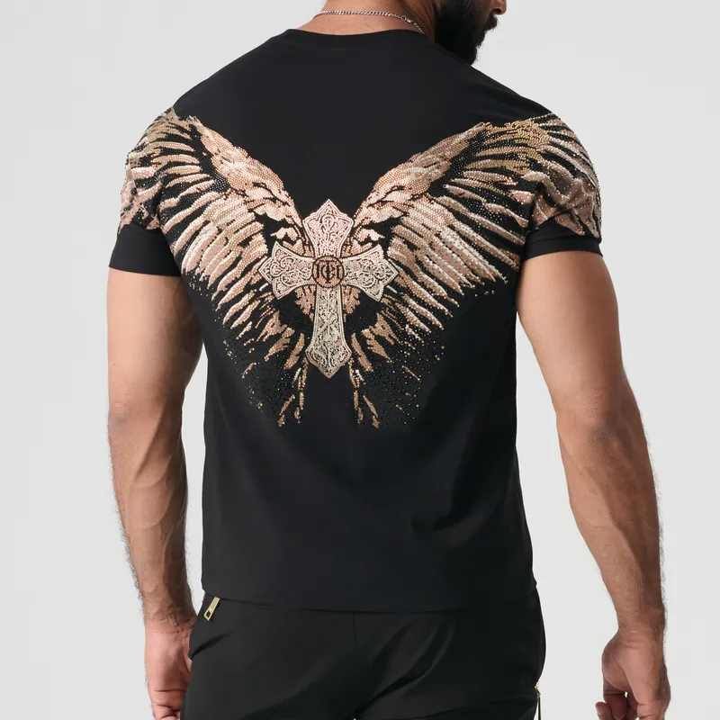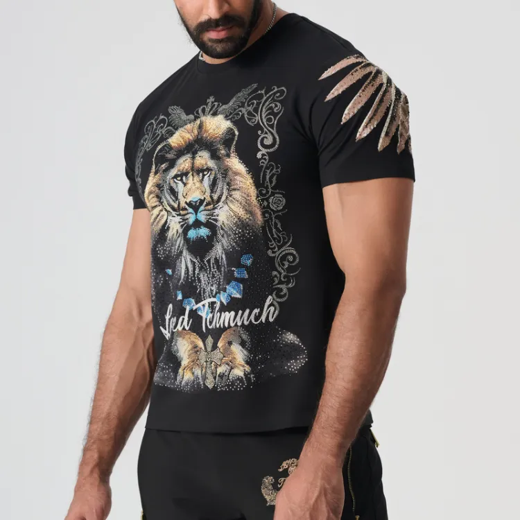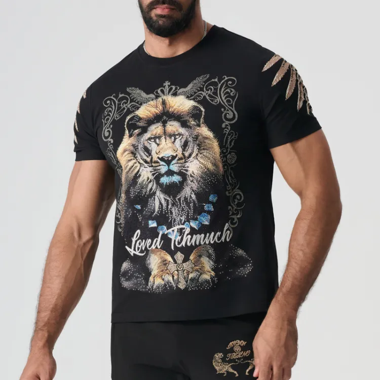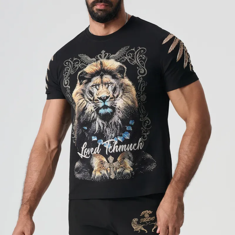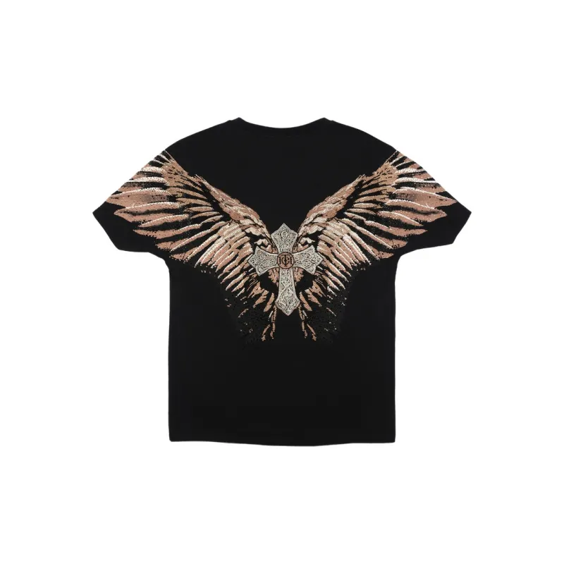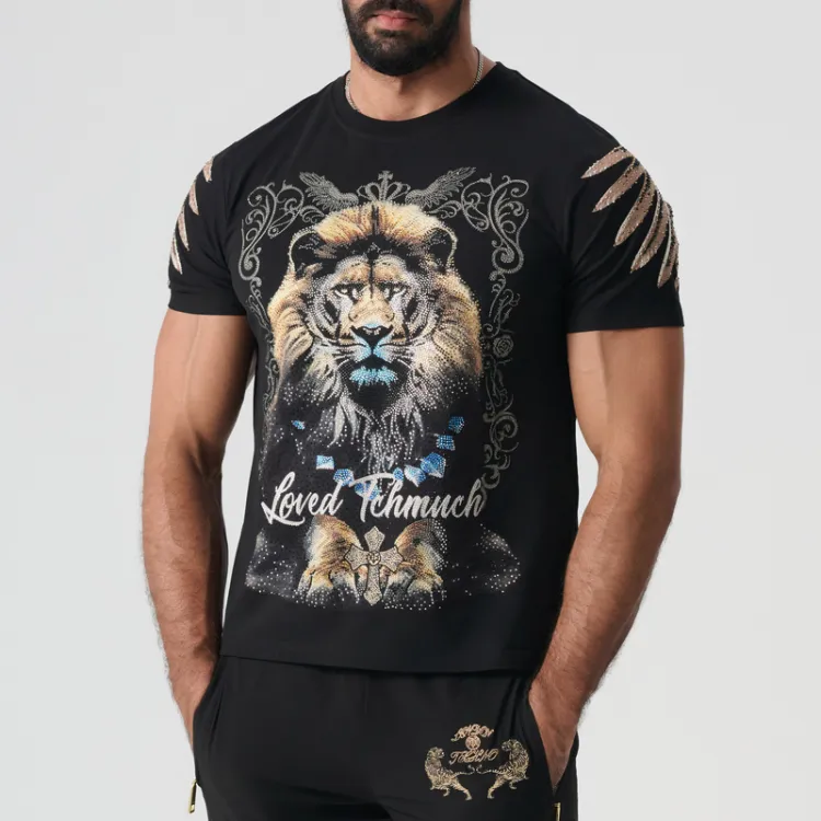 TCH 블랙 바탕 골드 로고 남녀공용 티셔츠 - POIZON