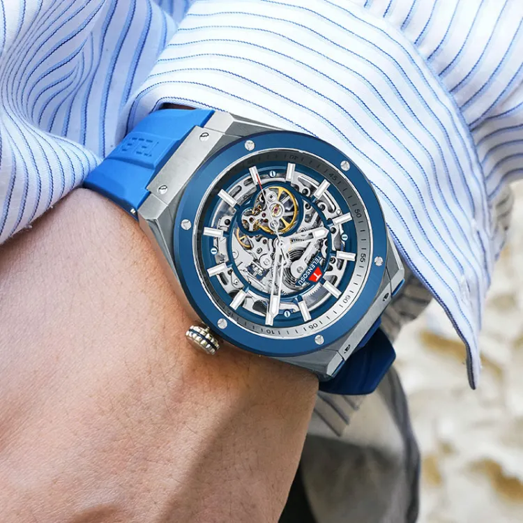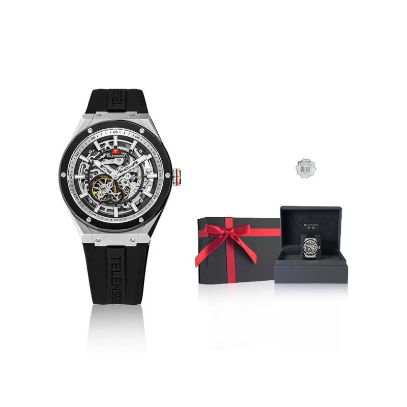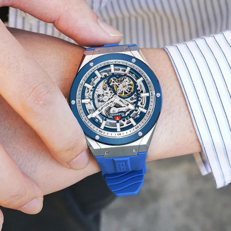 텔렌소수 Yuan 유니버스 컬렉션 오토매틱 메커니컬 무브먼트 실리콘 스트랩 중국 시계 남성용 시계 블루 다이얼