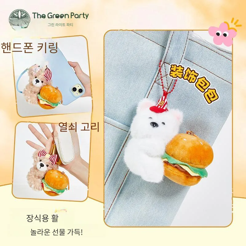 The Green Party 리틀 노즈 가아 치 버거 세트 Non 마그네틱, 2개 인형 플러시 펜던트 9cm 추천 신장
