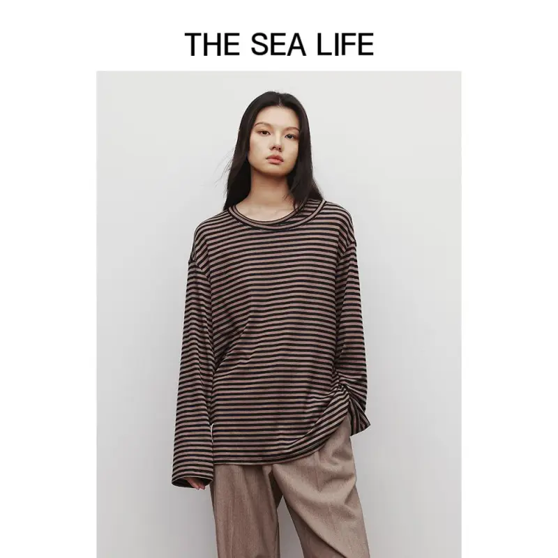 THE SEA LIFE 티 브라운 여성 티셔츠 - POIZON