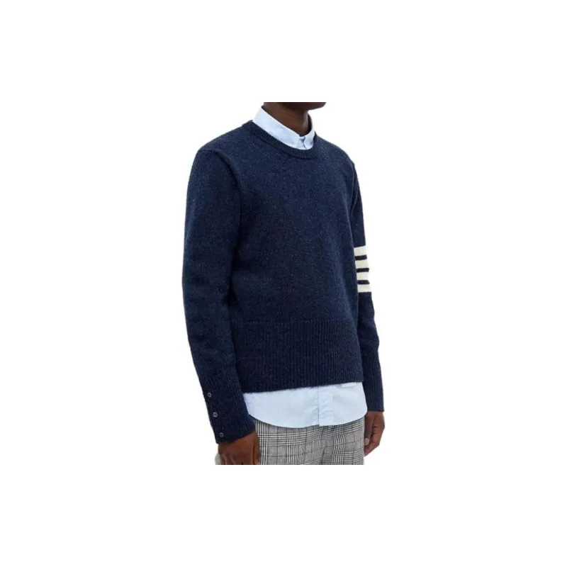 톰브라운 셰틀랜드 사선 클래식 크루넥 풀오버 니트 네이비 - POIZON