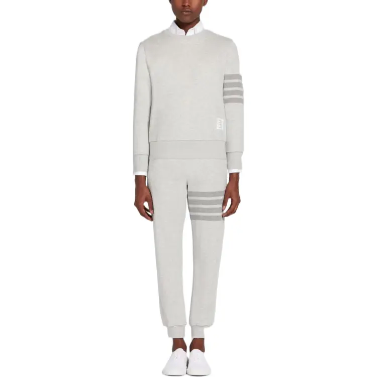 톰브라운 루프백 테리 토날 사선 릴렉스 핏 크루넥 스웨트셔츠 파스텔 그레이 - POIZON