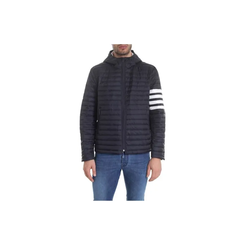 톰브라운 매트 나일론 사선 스트라이프 다운필 퀼티드 자켓 네이비