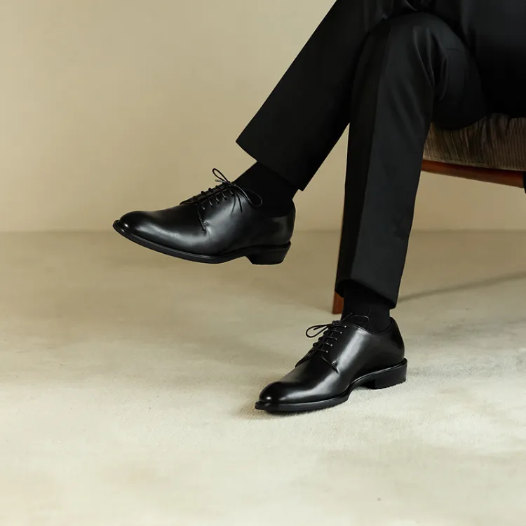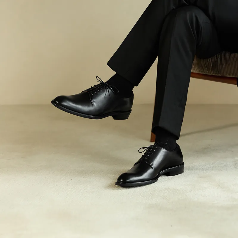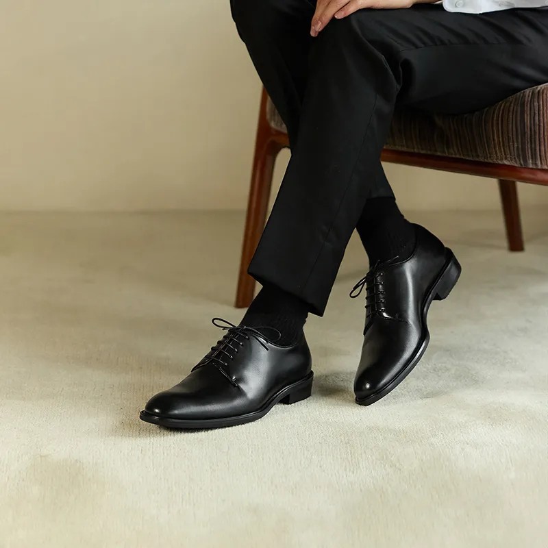 THOM WILLS 브리티시 비즈니스 송아지 가죽 데르비 신발 정장화 남성 블랙