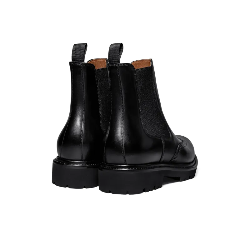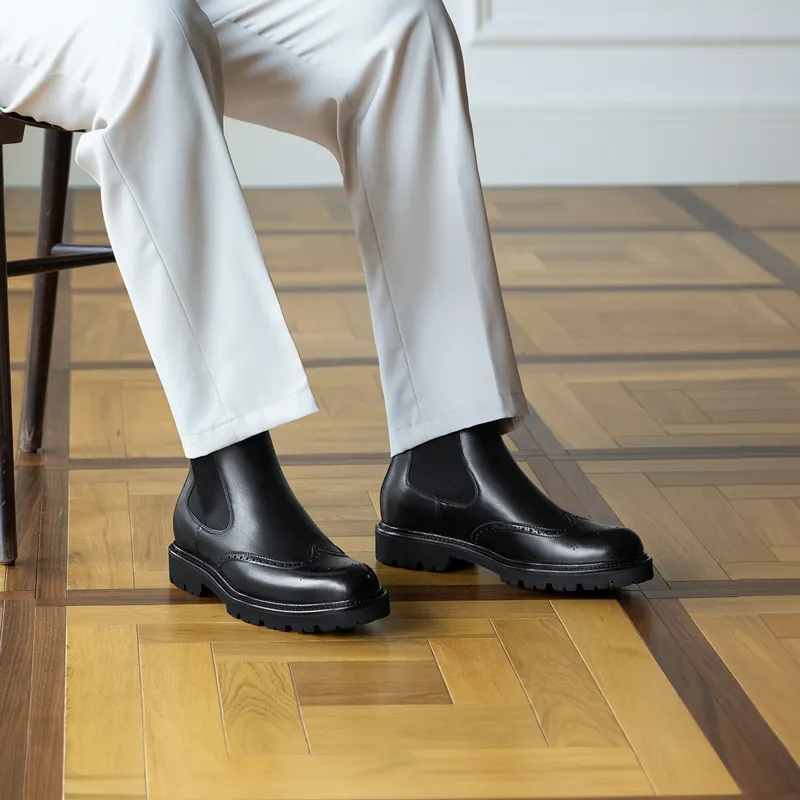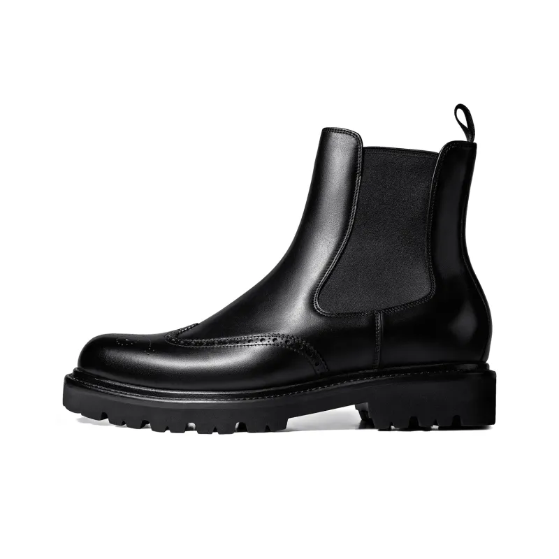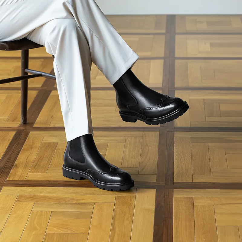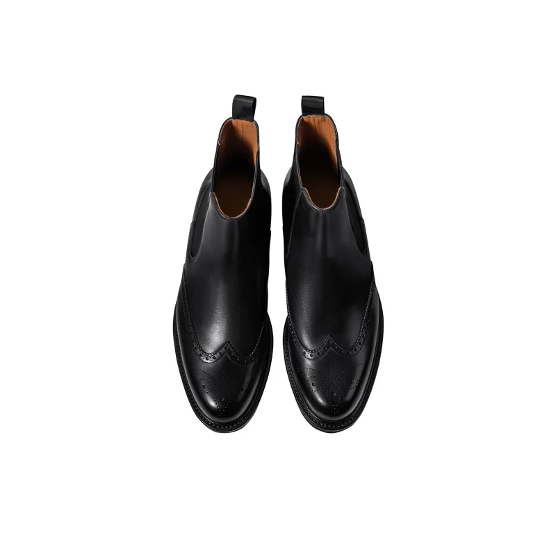 THOM WILLS 브리티시 비즈니스 포멀 브로그 자수 스타일 가죽 부츠 첼시 부츠 남성 블랙