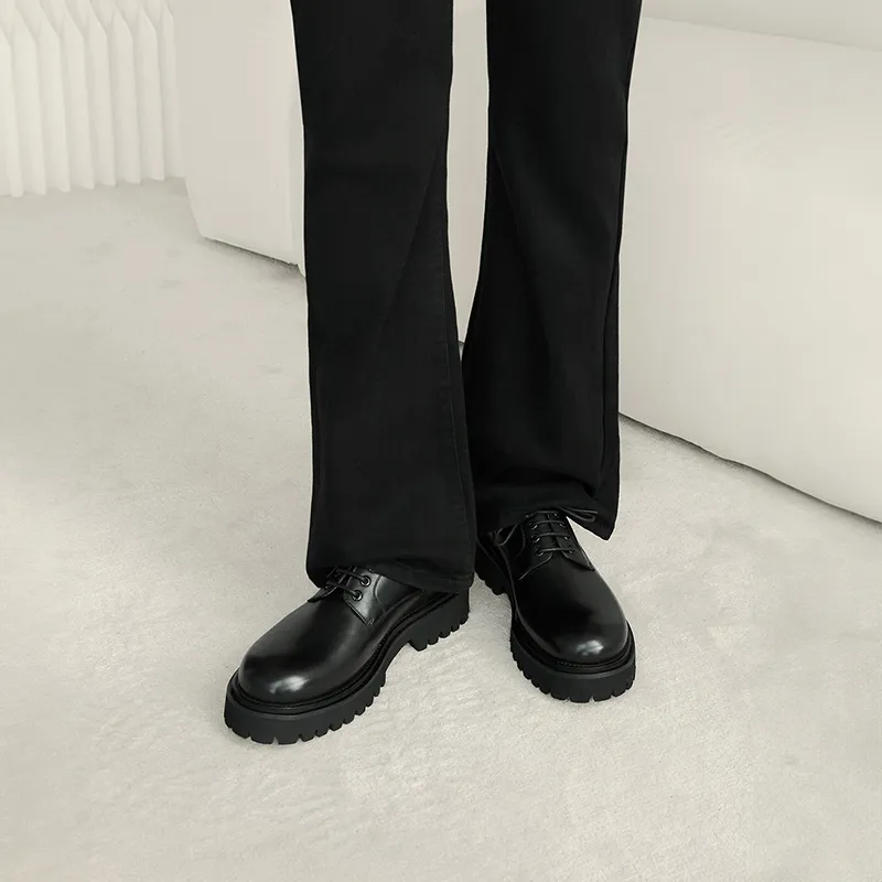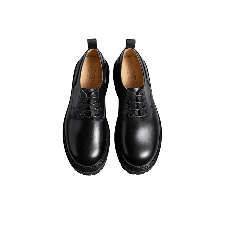 THOM WILLS Cleanfit 송아지 가죽 청키 데르비 신발 캐쥬얼화 4.8cm 남성 블랙 - POIZON
