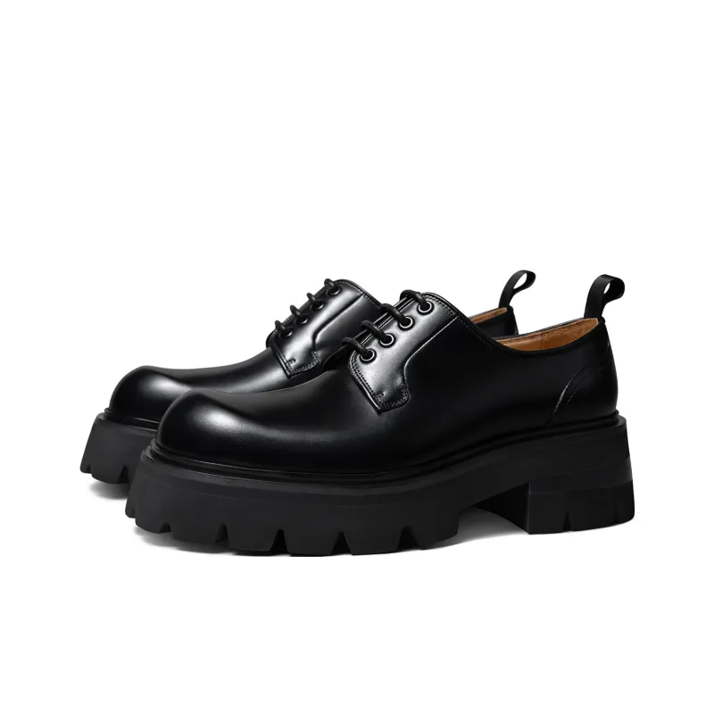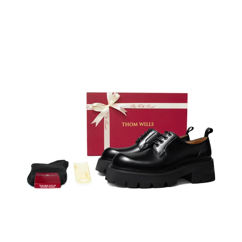 THOM WILLS Cleanfit 트렌디하고 활용도가 높은 청키 더비 신발 캐쥬얼화 6cm 남성 블랙 - POIZON