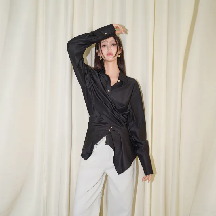Three Quarters 블랙 여성 셔츠 - POIZON