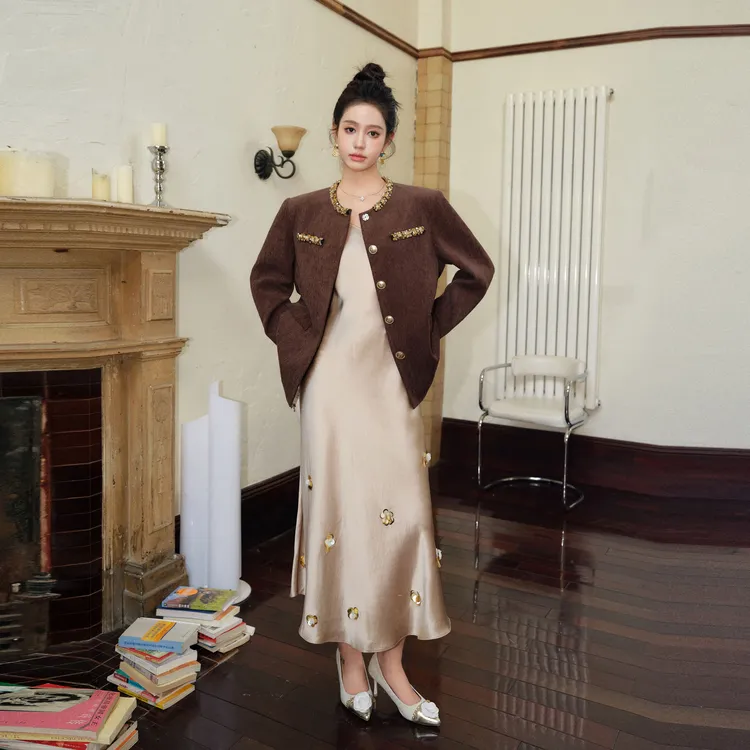 Three Quarters 골든 여성 민소매 원피스 - POIZON