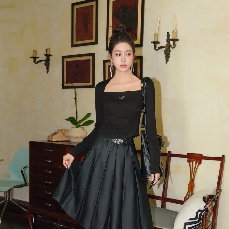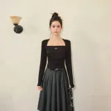 Three Quarters 블랙 여성 티셔츠 - POIZON