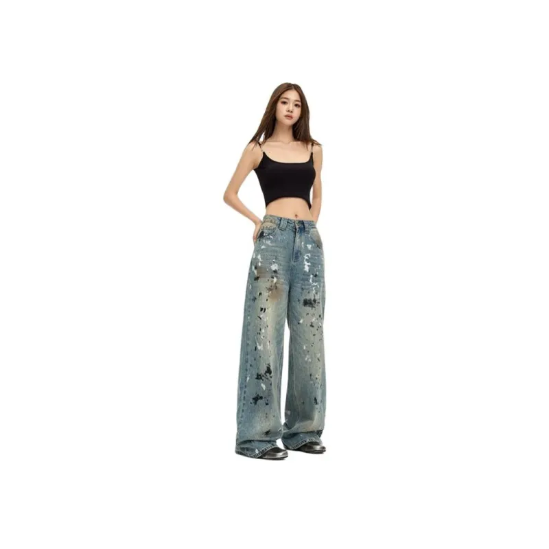 TLONELY1 잉크 염색 블루 여성 청바지 - POIZON