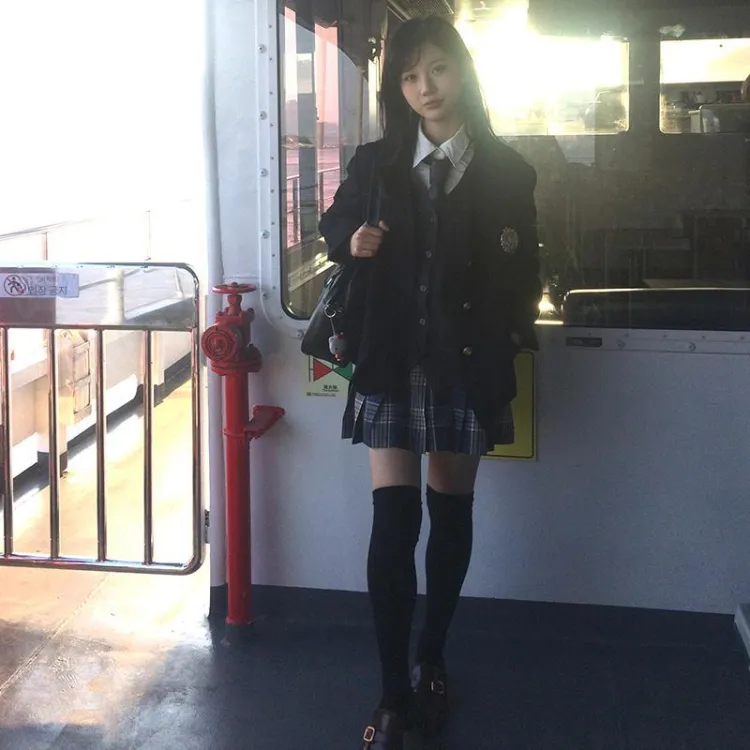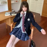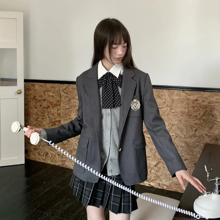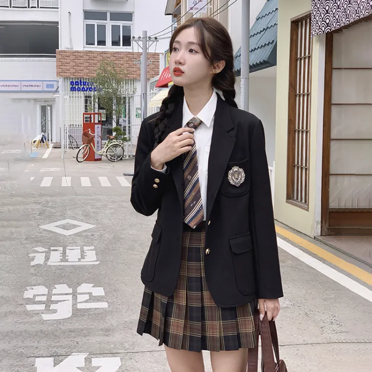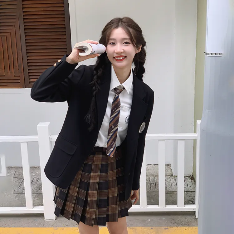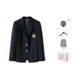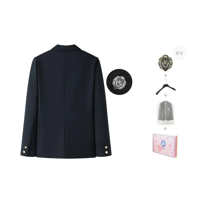 블랙 수트, 포함된 긴팔 블라우스 + 넥타이 + 더스트백 + 행거 + 배지 + 넥타이
