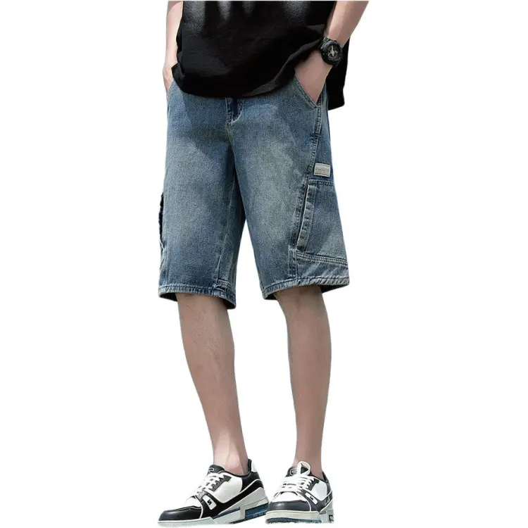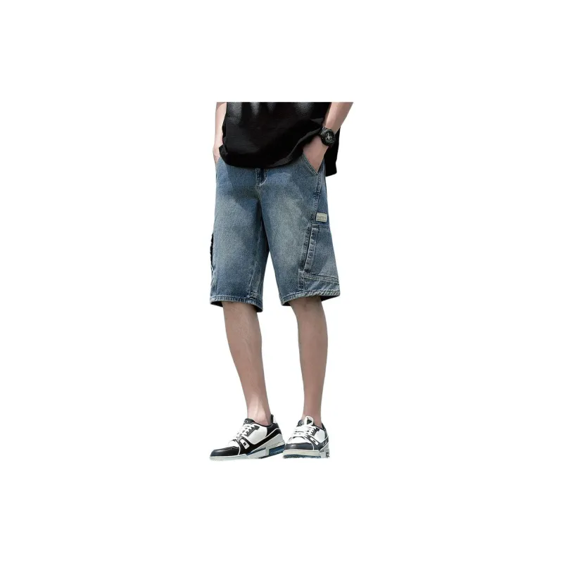 Tonlion 빈티지 블루 남성 데님 반바지 - POIZON