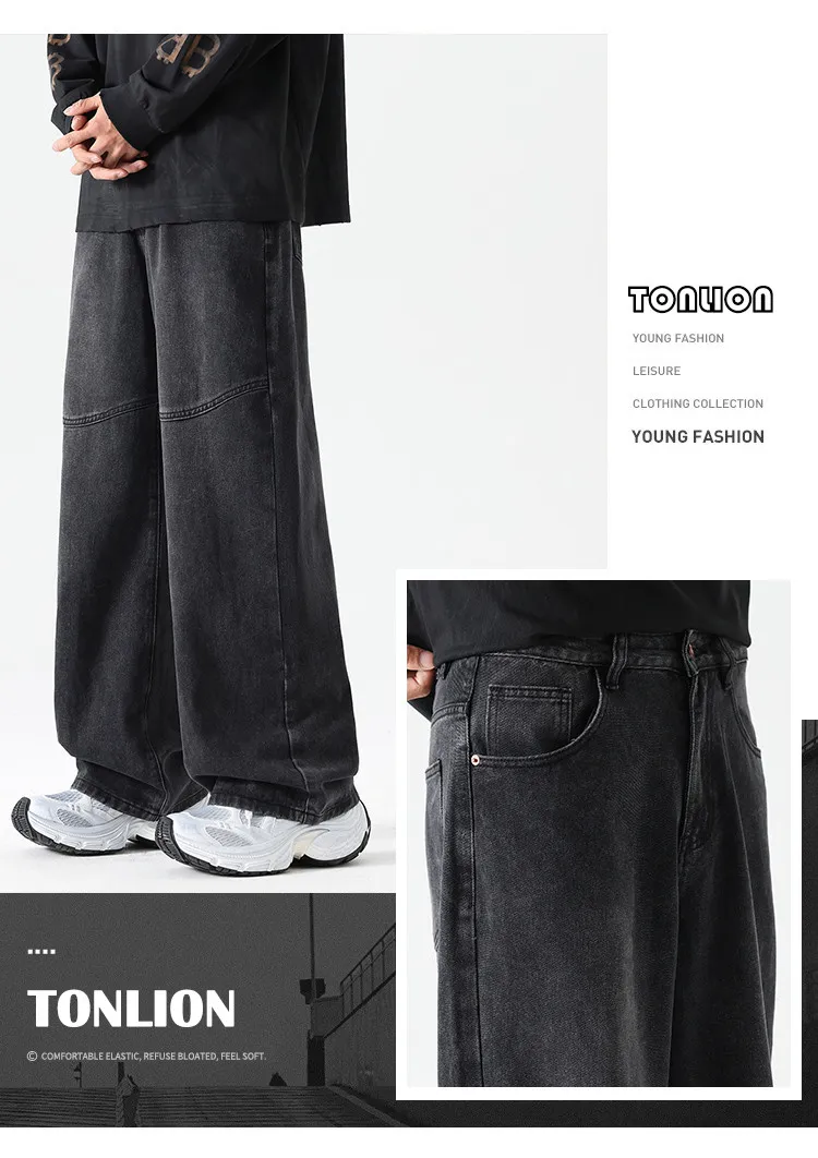 Tonlion 블랙 남녀공용 청바지 - POIZON