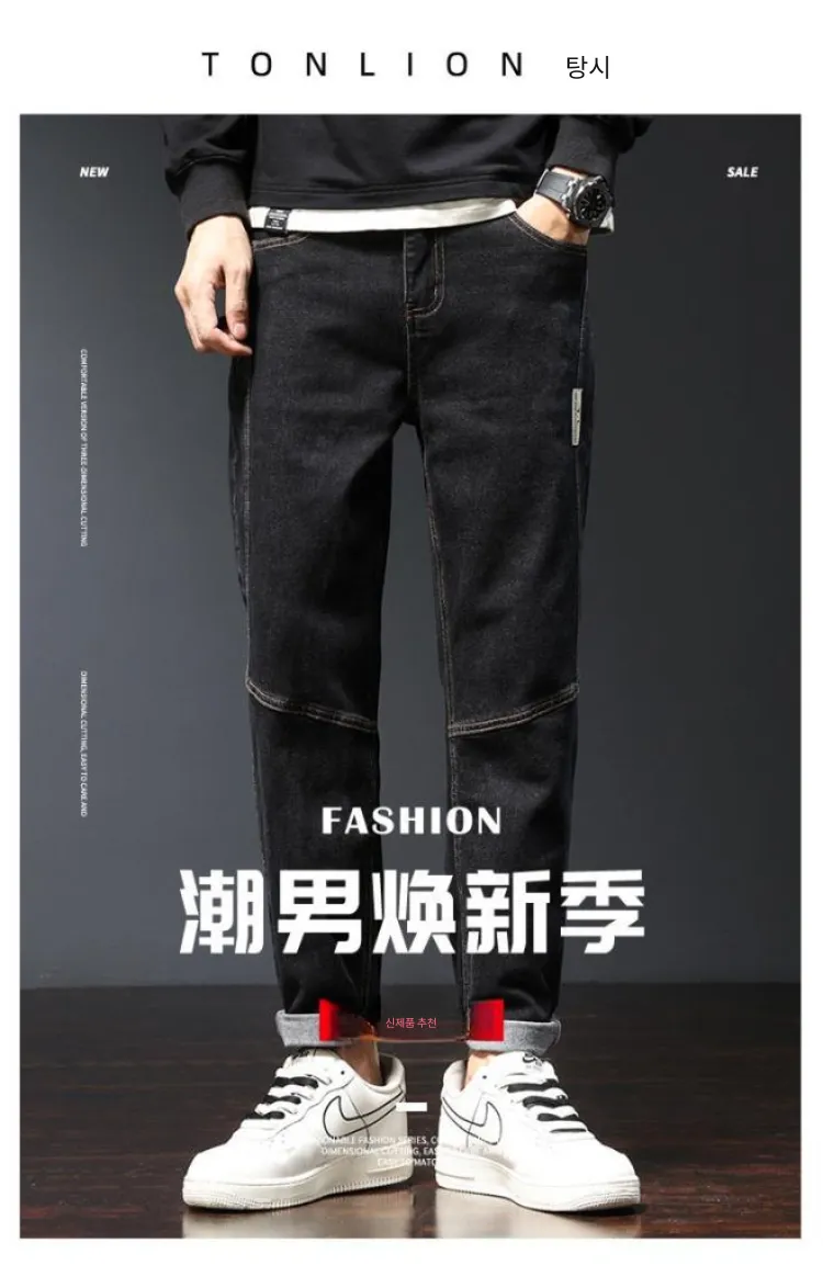 Tonlion 블랙 남녀공용 청바지 - POIZON