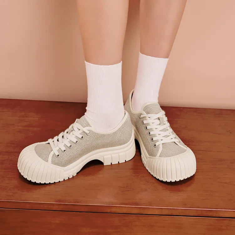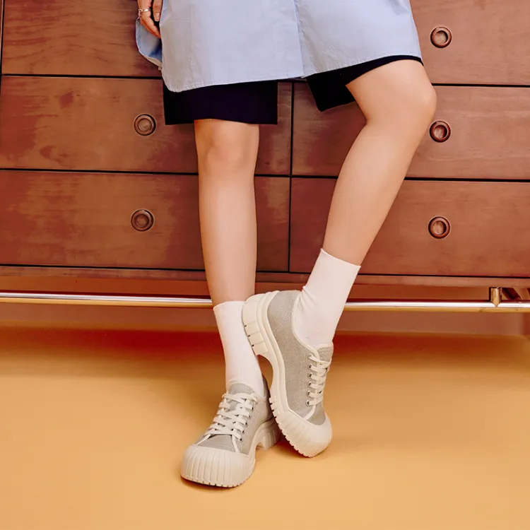 TOOMANYSHOES 해적 선 로우탑 캐주얼화 여성 그레이 애프리콧