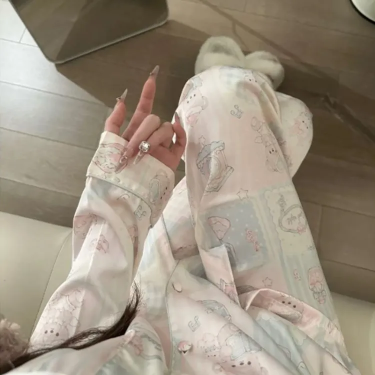 Top Melon 이미지 컬러 여성 파자마 세트 - POIZON